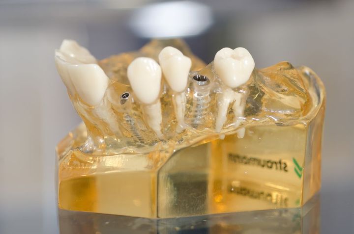 Implantate sind künstliche Zahnwurzeln aus Titan und dienen als Ersatz verloren gegangener Zähne.